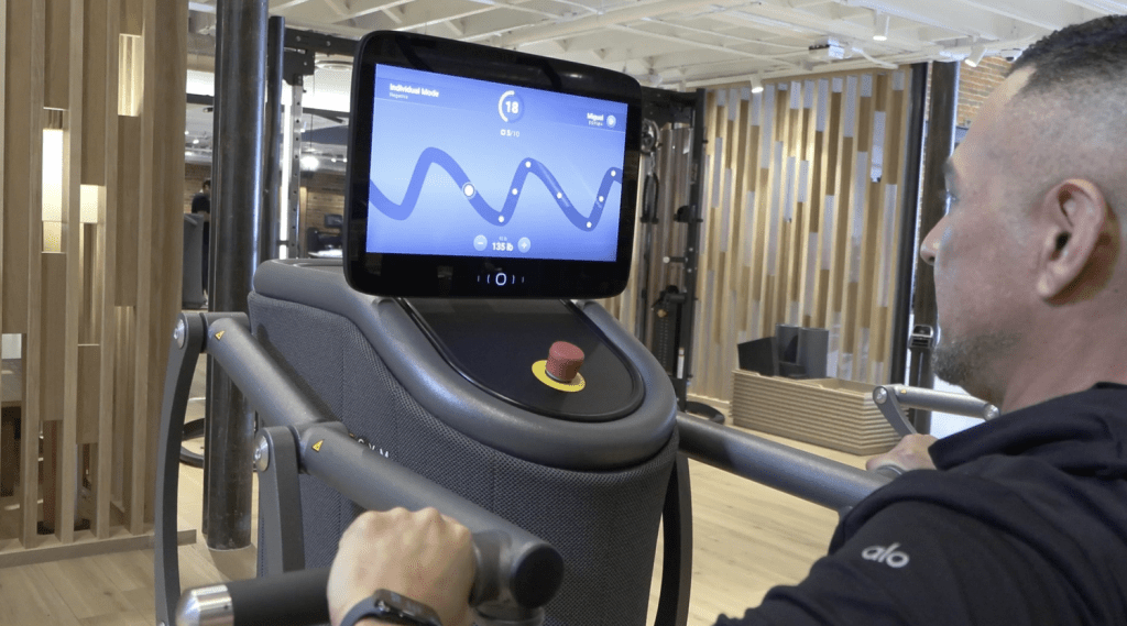 Members have a wristband they can tap on various machines, which allows their personal stat or need to be delivered through the machine. The machine shows members their true age and strength BioAge, which personalizes their training weights based on strength tests.
